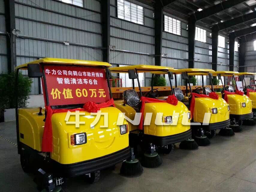 簽約儀式后,牛力機(jī)械向鶴山市捐贈6輛智能清潔車。