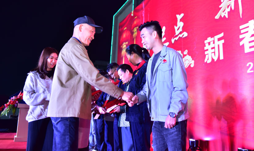 股東代表宋有南先生和伍永勤先生分別向2019年18位優(yōu)秀員工頒發(fā)獎勵