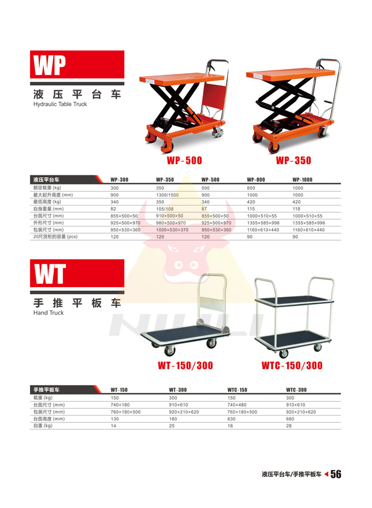 WP液壓平臺(tái)車采用高強(qiáng)度鋼材制作而成,設(shè)計(jì)結(jié)構(gòu)合理,安全平穩(wěn)可靠,內(nèi)裝安全閥,全密封油缸,手動(dòng)控制液壓系統(tǒng)升降,操作方便簡捷。 配有導(dǎo)向輪向輪節(jié)省操作者的體力,并能保護(hù)載重輪與托盤載重輪。