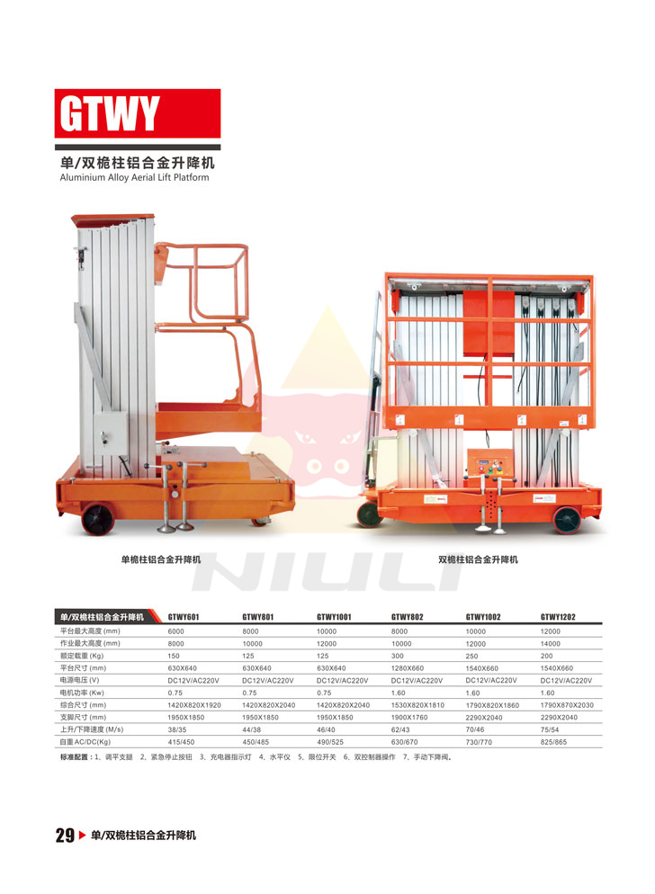 單桅柱鋁合金升降機 | GTWY601 | GTWY801 | GTWY1001 |